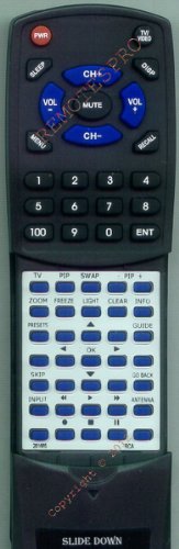 This is a custom built replacement remote made by Redi Remote for the RCA remote control number 261665. *This is NOT an original This remote control is specifically designed to be compatible with the following models of RCA units: 261665, D34W20, D40W20, D40W20BYX1, D52W20 ITC, D52W20BYX1 ITC, D52W20BYX2 ITC, D52W20BYX5 ITC, D52W20YX1 ITC, D56W20, D56W20BYX1, D61W20, RCR615TELM1, RCR615TELN1 *If you have any concerns with the remote after purchase, please contact me directly* There is a cover over the lower half of the remote. This will slide down to reveal the lower half buttons. |